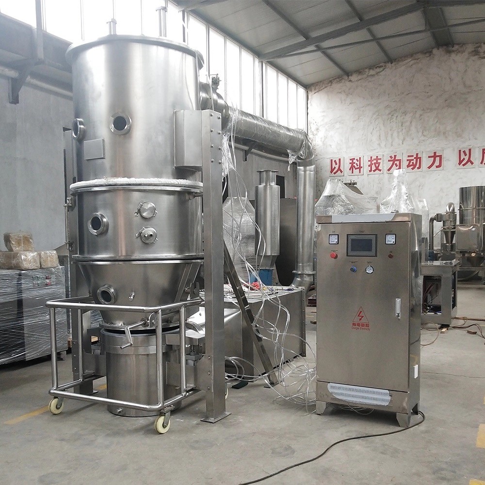 유동층 안으로 조립을 위한 파우더 또는 코팅하기 위한 과립 물질을 두세요. 차가운 공기는 주 엔진의 배후에서 히팅 챔버로부터 들어갑니다. 초기의 효과와 중간 효과가 여과한 후, 히터는 흡입 공기에 의해 요구된 온도로 가열하고, 그리고 나서 유동층에 들어갑니다. 그것은 베드 내에서 유동화되고 조립을 위한 바인더가 주입 펌프에 의해 2유체 분무기에 보내지고, 분무법 뒤에 유동성 물질에 분사했습니다. 파우더는 서로를 연결하고, 낟알 안으로 수집되고, 코팅될 재료에 영화를 성장하거나 형성합니다. 물이 휘발된 후, 그것은 배출 공기에 의해 기계에서 벗어납니다.